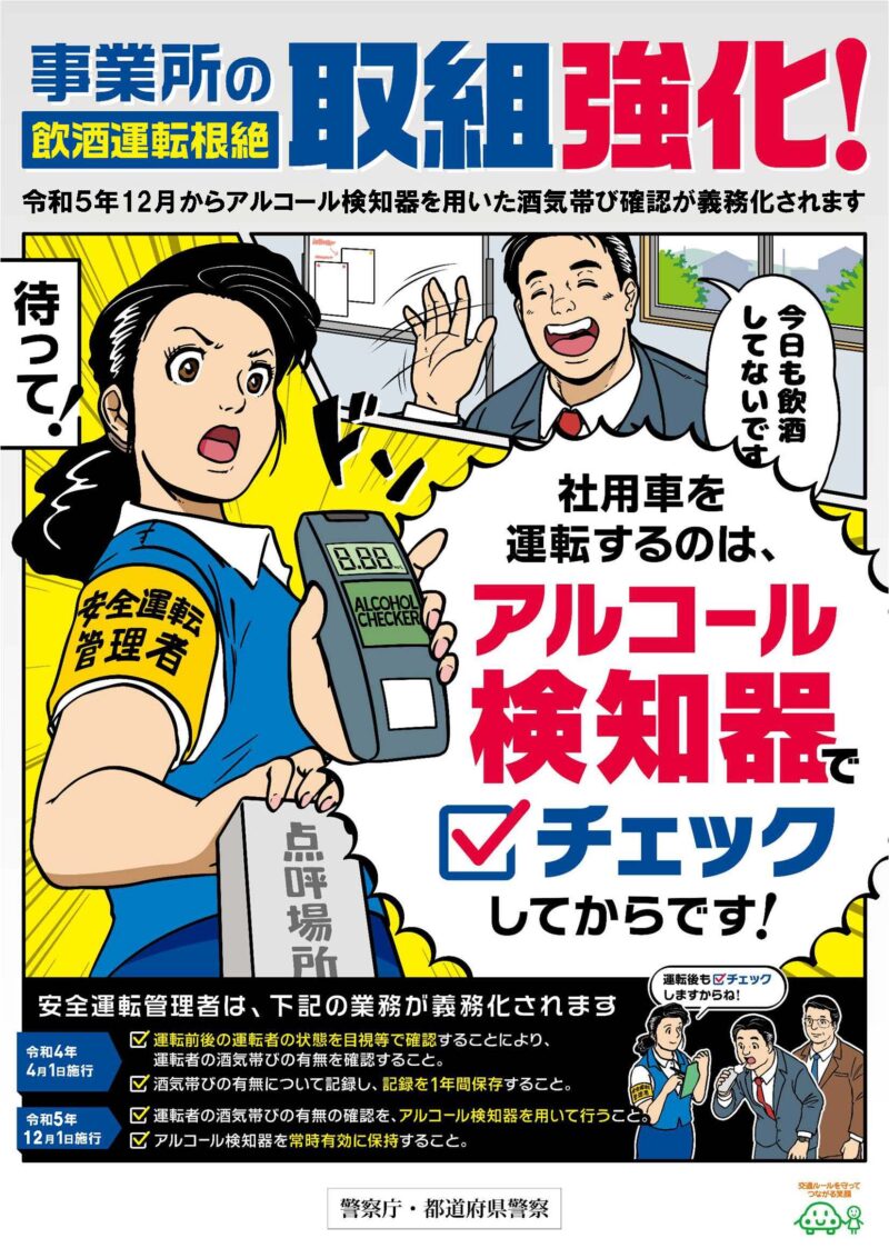 また、是正命令に従わない場合も50万円以下の罰金。飲酒運転が発覚した場合には、運転者だけでなく企業も罰則を受けます。