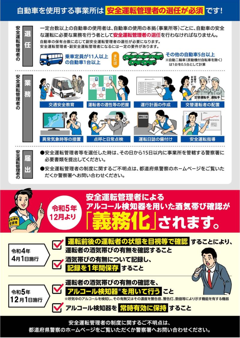 - 安全運転管理者を選任し届出(選任後15日以内)